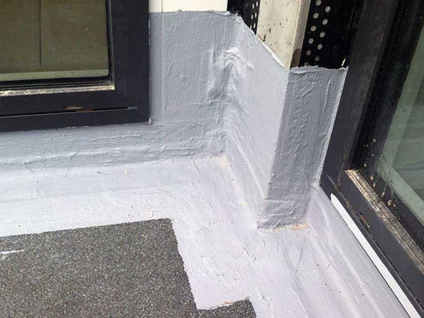 Zuerst werden Anschlüsse an Wänden und Türen abgedichtet, anschließend die Fläche. Die Abdichtung erfolgt mit Flüssigkunststoff, Bitumenbahnen oder Kunststoffbahnen.