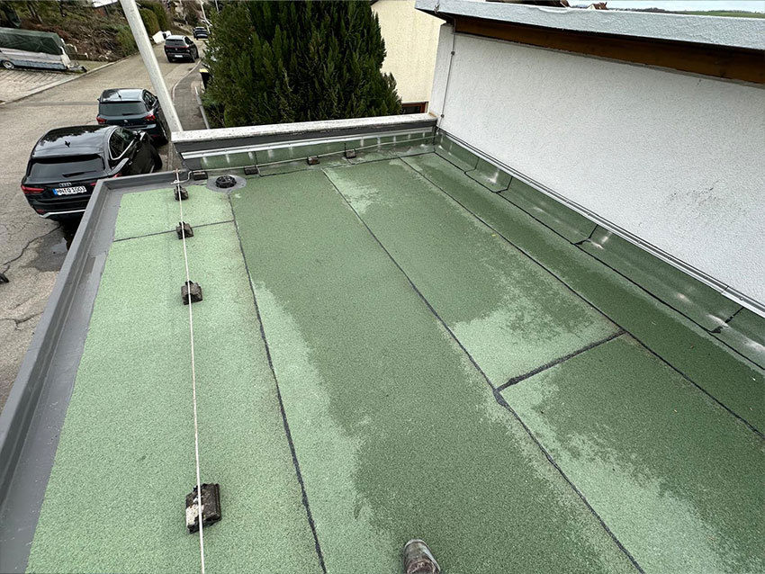 Das Garagendach wird häufig als Flachdach ausgebildet. Moderne Abdichtungstechniken halten bei fachgerechter Verlegung mehrere Jahrzehnte und schützen so wirkungsvoll vor Wasserschäden. Sanierungsbedarf besteht vor allem bei älteren Geragendächern.